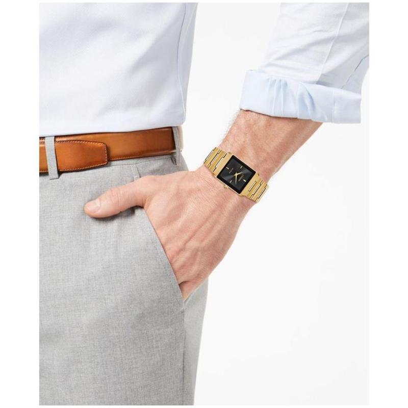 axonus海外专营店西铁城手表Citizen中性金色方形光动能石英钢带礼物AR3102-51E